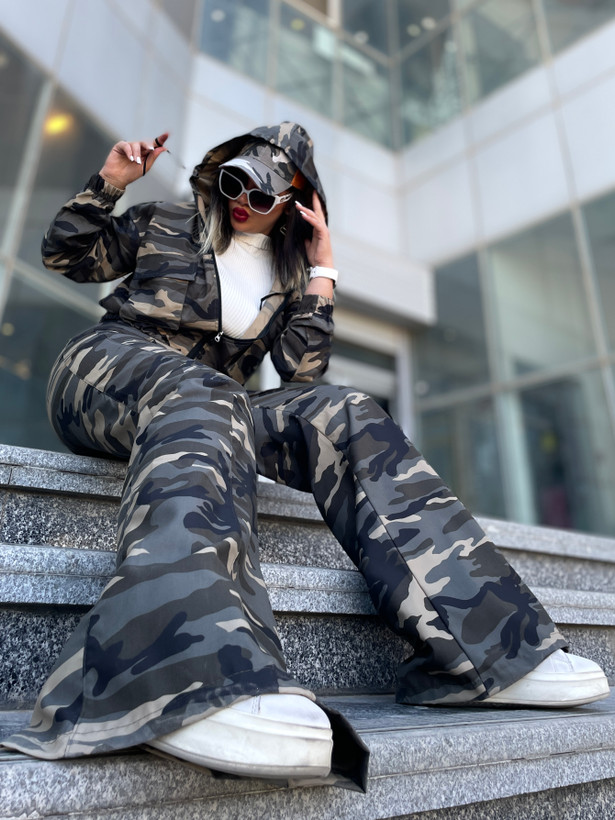 اندازه های کار: قد سوییشرت ۵۲ یقه تا سر آستین ۷۴ دور بازو ۴۲ دور سینه ۱۲۰ (زیپ بسته) قد شلوار ۱۰۹ دور کمر ۶۶ - ۹۶ دور باسن ۱۱۰ - ۱۱۸ دور ران ۶۶ - ۶۸ قد فاق ۳۲