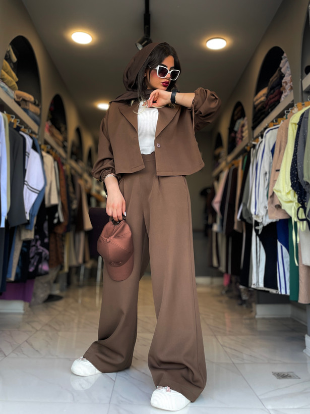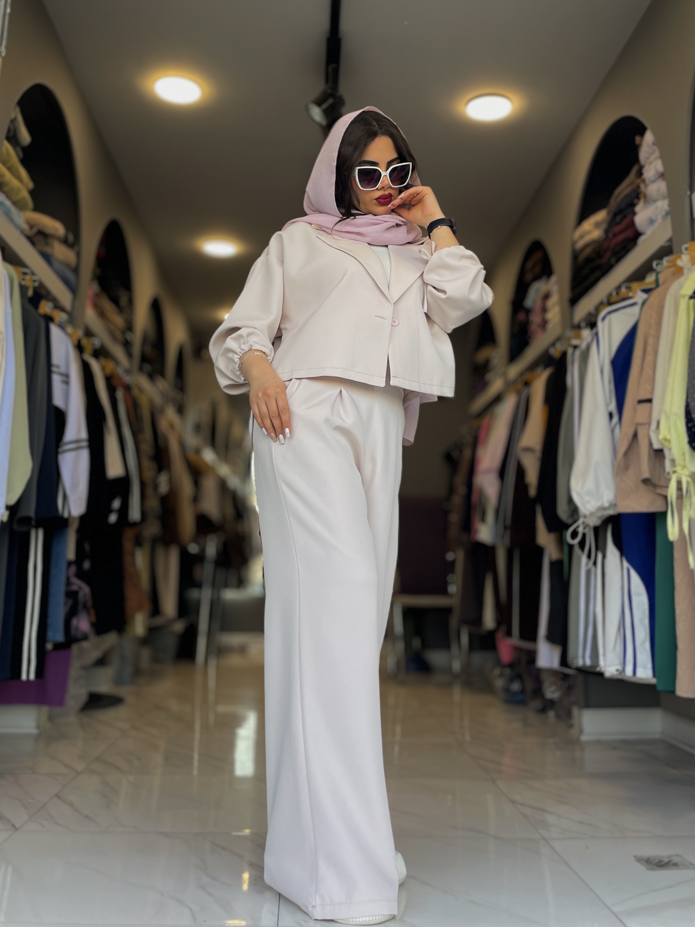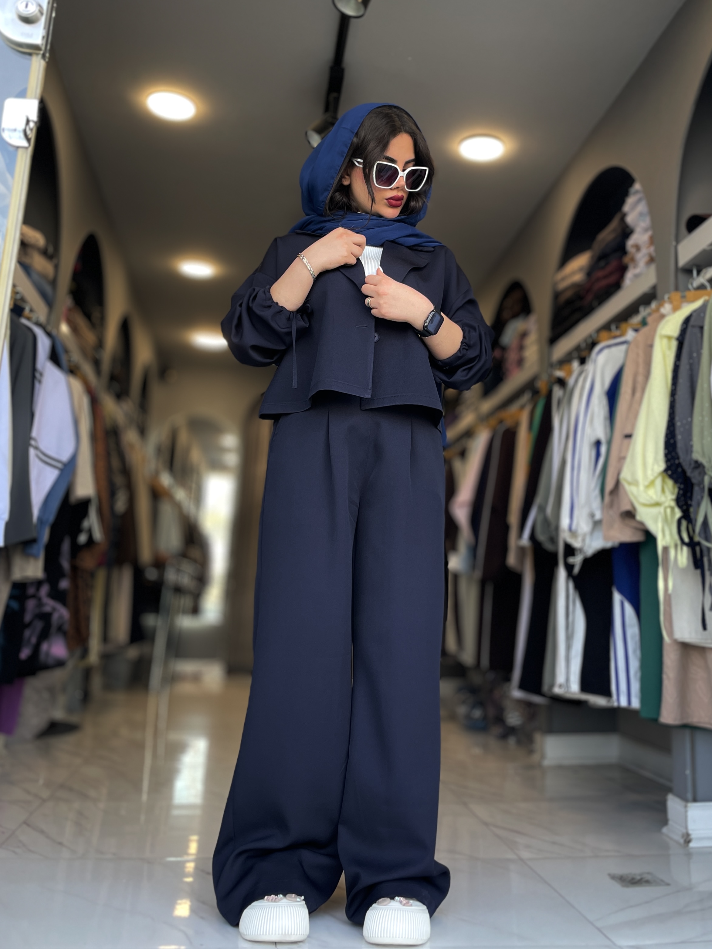 اندازه های سایز ۲: قد کت ۵۴ دورسینه ۱۲۸-۱۴۰ یقه تا سر استین ۷۴ دور بازو ۴۴-۵۰ قد شلوار ۱۱۰ دور کمر ۱۱۴-۱۲۸ دورباسن۱۱۲-۱۲۴ دور ران ۶۶-۷۶ قد فاق ۳۵