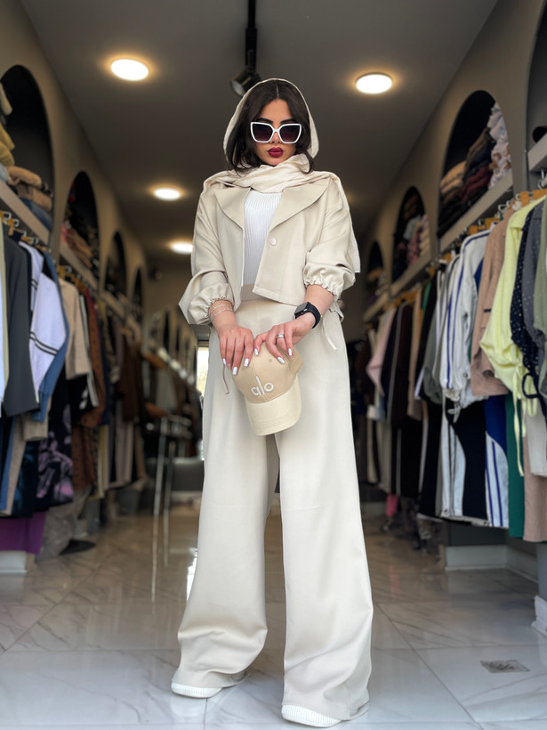 اندازه های سایز ۱: قد کت ۵۴ دورسینه ۱۲۸-۱۴۰ یقه تا سر استین ۷۴ دور بازو ۴۲-۴۸ قد شلوار ۱۰۹ دور کمر ۷۲-۹۲ دورباسن ۱۰۴-۱۱۶ دور ران ۶۲-۷۰ قد فاق ۳۴
