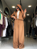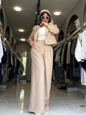 ست کت و شلوار با یه کپ فوق العاده باورتون نمیشه با چه قیمتب تقدیمتون میشه حتما چک کنید مشخصات رو کت کراپ باکسی تک دکمه که بصورت باز هم میشه استایلش کرد مچ آستین کت چاک داره و پاکتی هم میشه شونه کت اسفنج (اپل) داره که باعث شده ایستایی خیلی خوبی داشته باشه اگر به مدل و طرح یقه کت هم دقت کنیدعاشقش میشید شلوار بگ و ریزشی هست همونطوری که داخل تصویر میبینید جلوی کمر شلوار زیپ و دکمه هست و پشت کمر کش کار شده همونطور که میدونید امسال خیلی شلوار پیله دار پرطرفدار شده دلیلشم اینه که تنخور شلوار رو خیلی شیک و خانومانه نشون میده جلوی شلوار دوتا پیلی دوخته شده راستی به درخواست زیادتون قد شلوار هم طبق معمول بلند گرفته شده ولی اگر بخواین قابل کوتاه شدن توسط خیاط هم هست یه کت و شلوار ساده کاربردی بهترین انتخاب برای مهمونیاتون کافه گردی و مسافرت و روزمرگی و…رو بورس ترین ست های دخترونه و زنونه رو میتونید از فروشگاه زیمز هم بصورت انلاین و ارسال فوری و هم بصورت حضوری خریداری کنید