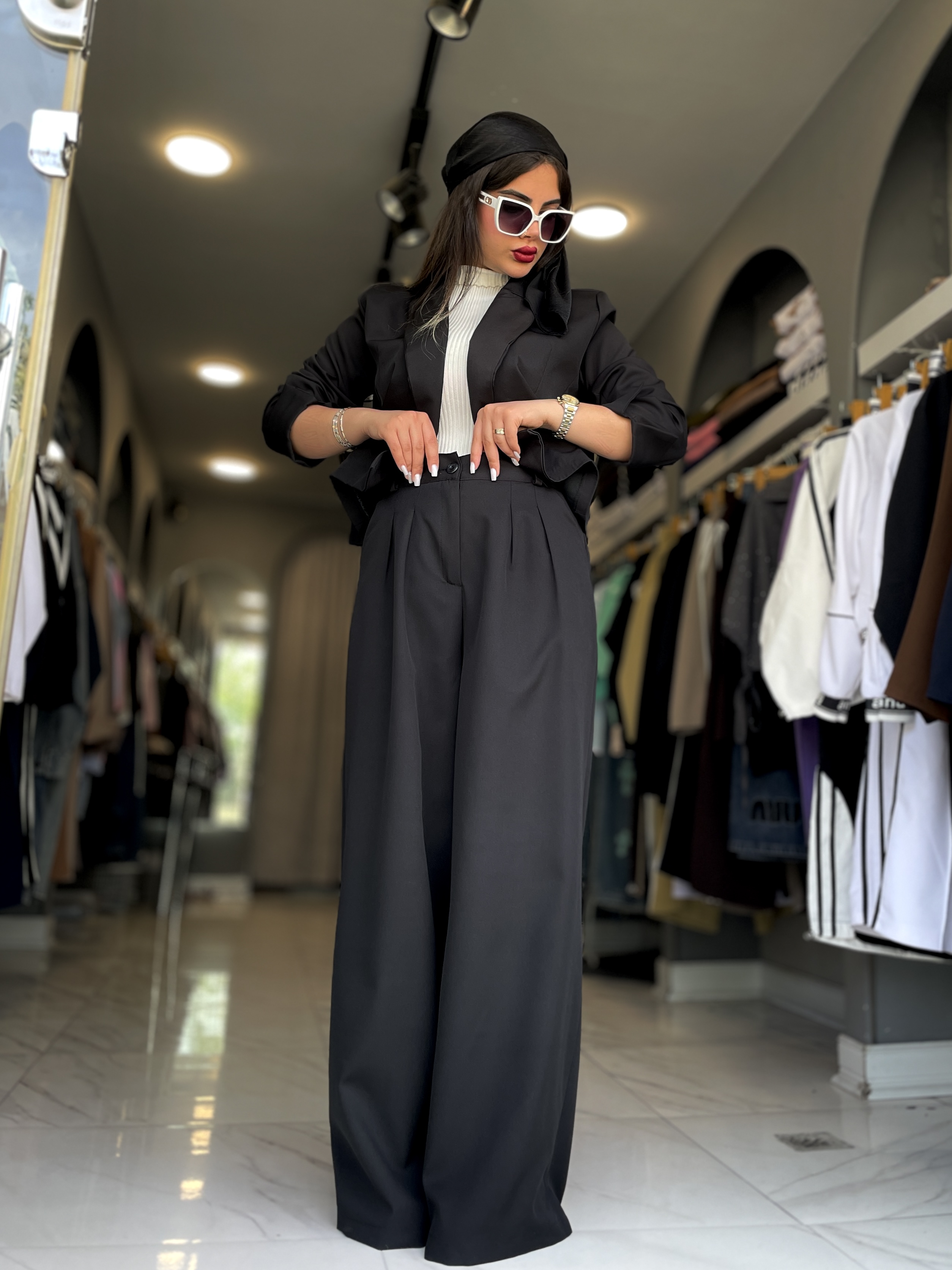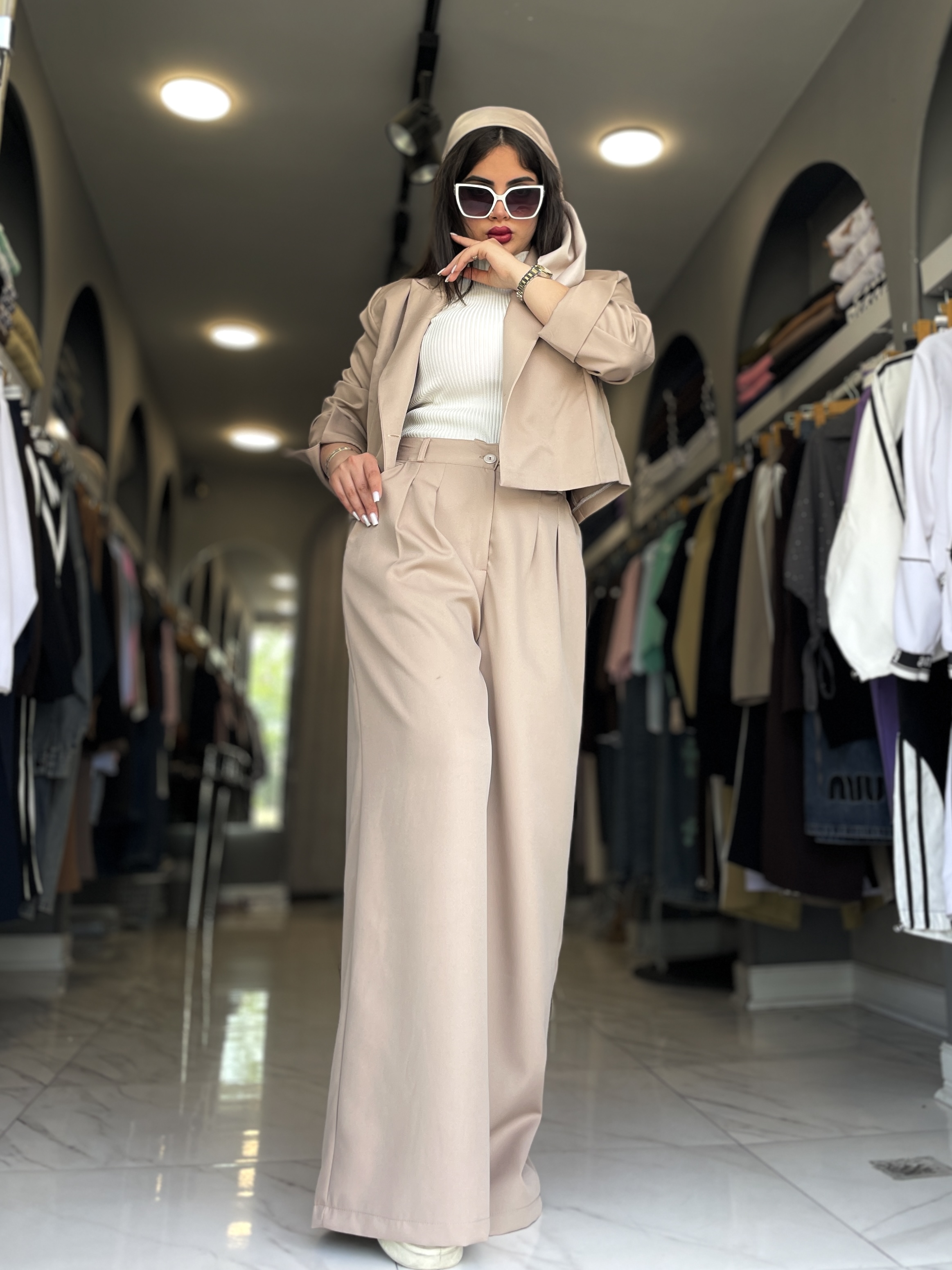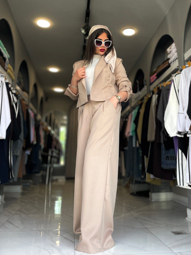 ست کت و شلوار با یه کپ فوق العاده باورتون نمیشه با چه قیمتب تقدیمتون میشه حتما چک کنید مشخصات رو کت کراپ باکسی تک دکمه که بصورت باز هم میشه استایلش کرد مچ آستین کت چاک داره و پاکتی هم میشه شونه کت اسفنج (اپل) داره که باعث شده ایستایی خیلی خوبی داشته باشه اگر به مدل و طرح یقه کت هم دقت کنیدعاشقش میشید شلوار بگ و ریزشی هست همونطوری که داخل تصویر میبینید جلوی کمر شلوار زیپ و دکمه هست و پشت کمر کش کار شده همونطور که میدونید امسال خیلی شلوار پیله دار پرطرفدار شده دلیلشم اینه که تنخور شلوار رو خیلی شیک و خانومانه نشون میده جلوی شلوار دوتا پیلی دوخته شده راستی به درخواست زیادتون قد شلوار هم طبق معمول بلند گرفته شده ولی اگر بخواین قابل کوتاه شدن توسط خیاط هم هست یه کت و شلوار ساده کاربردی بهترین انتخاب برای مهمونیاتون کافه گردی و مسافرت و روزمرگی و…رو بورس ترین ست های دخترونه و زنونه رو میتونید از فروشگاه زیمز هم بصورت انلاین و ارسال فوری و هم بصورت حضوری خریداری کنید