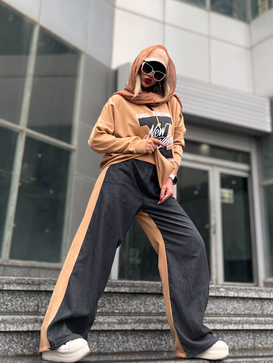 ست سوییشرت شلوار ترکیبی جین و مازراتی سویل