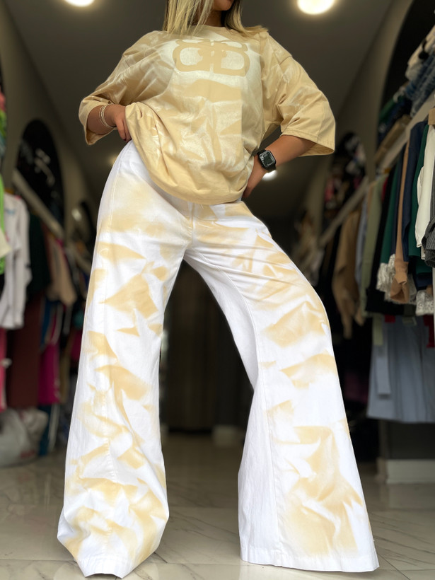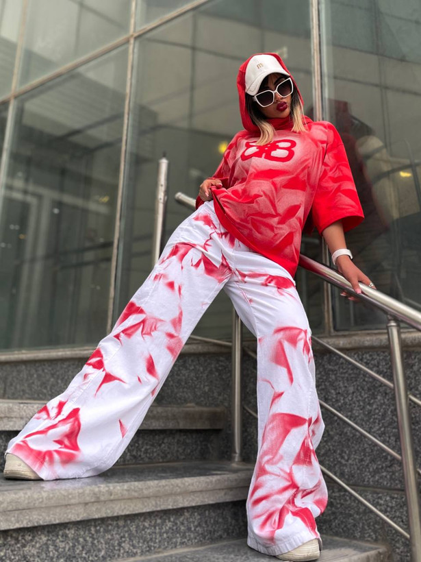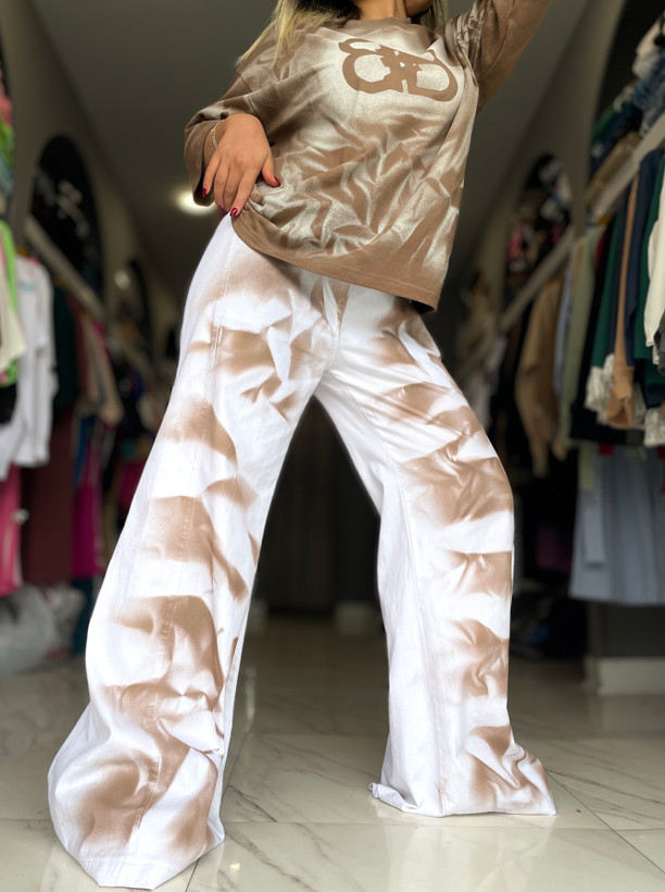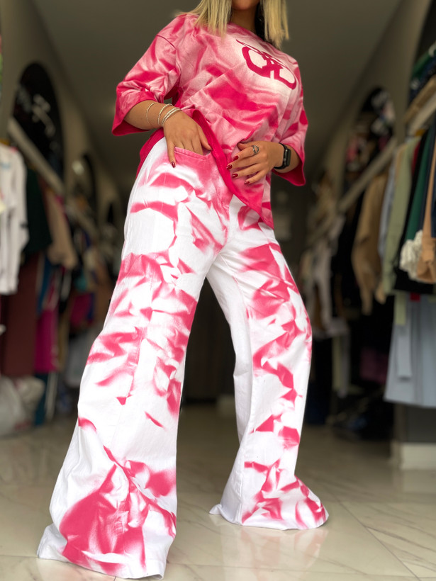 اندازه های کار: قد تیشرت ۶۸ قد یقه تا سرآستین ۵۰ دور بازو ۴۴ - ۵۴ دور سینه ۱۲۰ - ۱۴۰ قد شلوار ۱۱۱ دور کمر ۶۰ - ۹۴ دور ران ۶۳ دور باسن ۱۲۰ قد فاق ۳۱