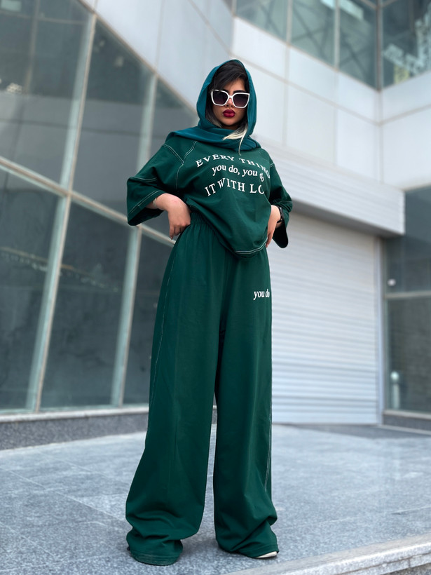 اندازه های کار: قد بالاتنه ۶۸ قد یقه تا سرآستین ۵۶ دور بازو ۴۴ - ۵۰ دور سینه ۱۲۰ - ۱۴۰ قد شلوار ۱۱۷ دور کمر ۶۰ - ۱۳۰ دور باسن ۱۳۰ - ۱۵۰ دور ران ۷۴ - ۸۴ قد فاق ۴۳
