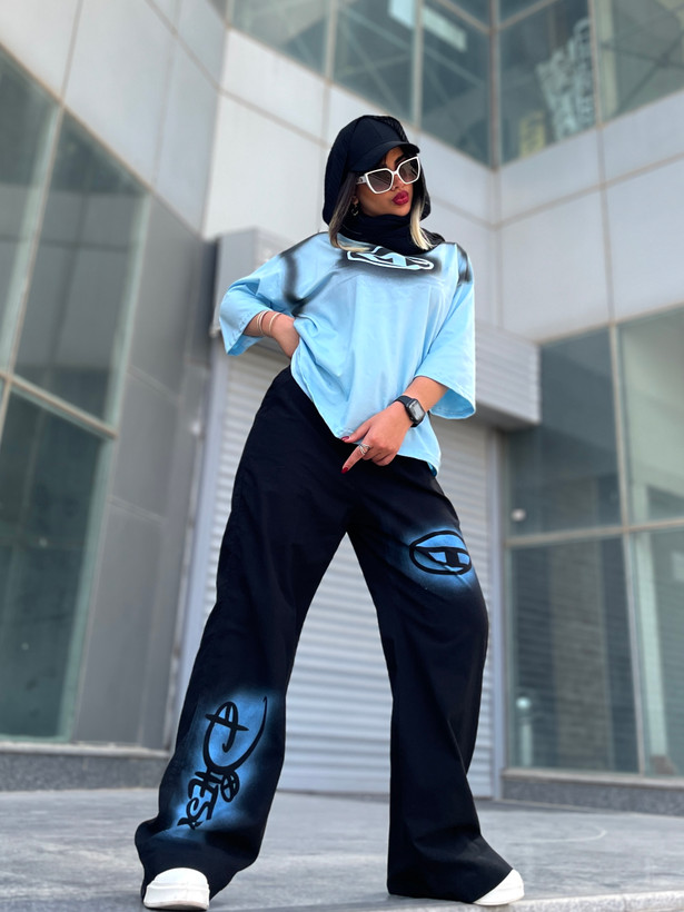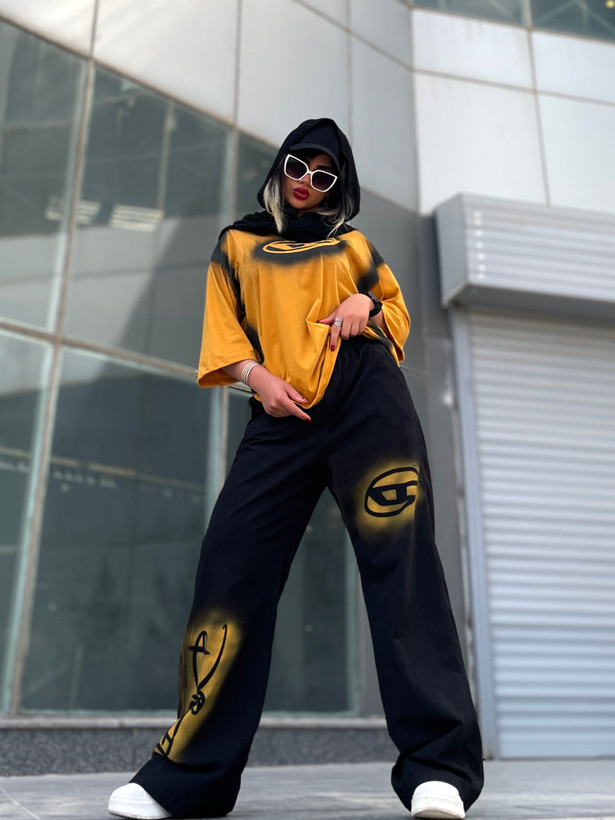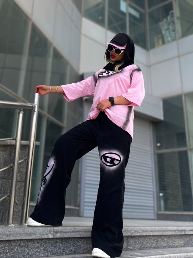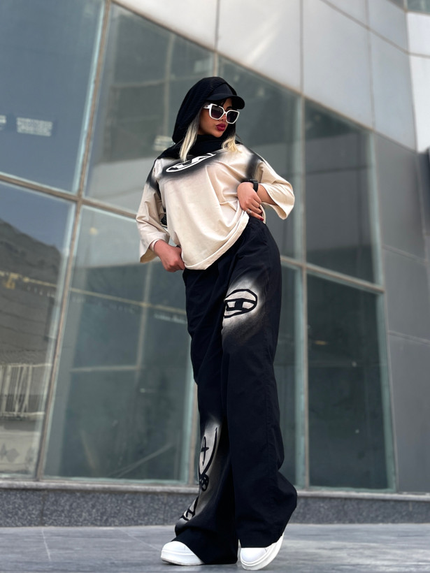 اندازه های کار: قد تیشرت ۷۰ قد یقه تا سرآستین ۵۴ دور بازو ۴۰ - ۴۸ دور سینه ۱۲۶-۱۵۰ قد شلوار ۱۱۰ دور کمر ۵۴ - ۱۰۶ دور باسن ۱۱۶ - ۱۲۴ دور ران ۶۸ - ۷۲ قد فاق ۳۳