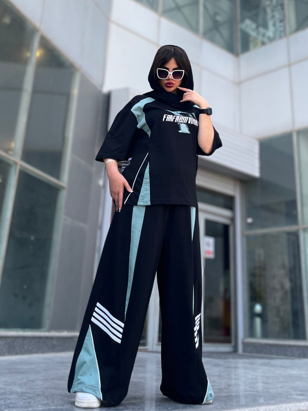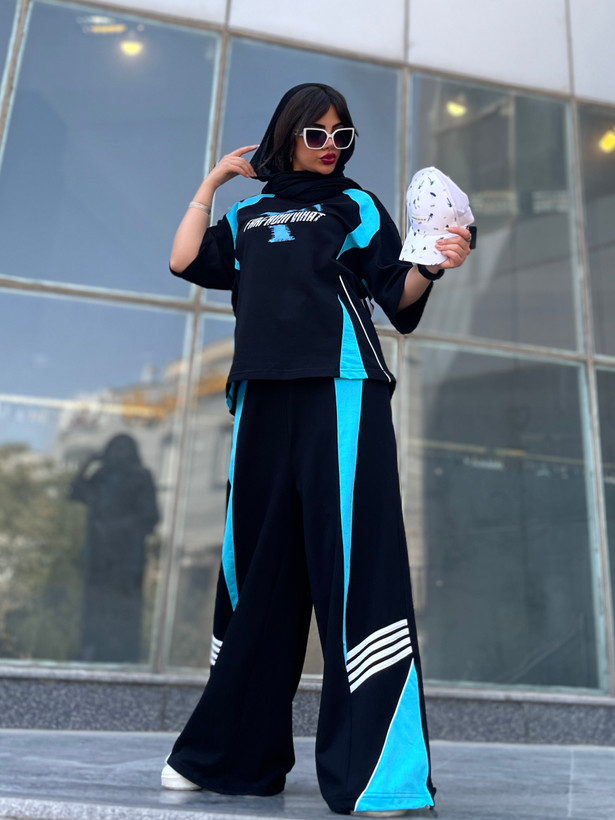 اندازه های کار: قد تیشرت ۷۵ دور سینه ۱۳۲ - ۱۵۶ یقه تا سرآستین ۴۸ دور بازو ۴۶ - ۵۶ قد شلوار ۱۱۰ قد فاق ۵۱ ران ۸۰ - ۹۸ باسن ۱۲۶ - ۱۵۶ دور کمر ۶۲ - ۱۲۰