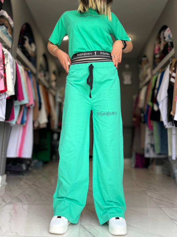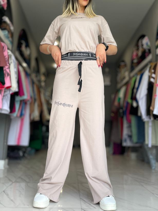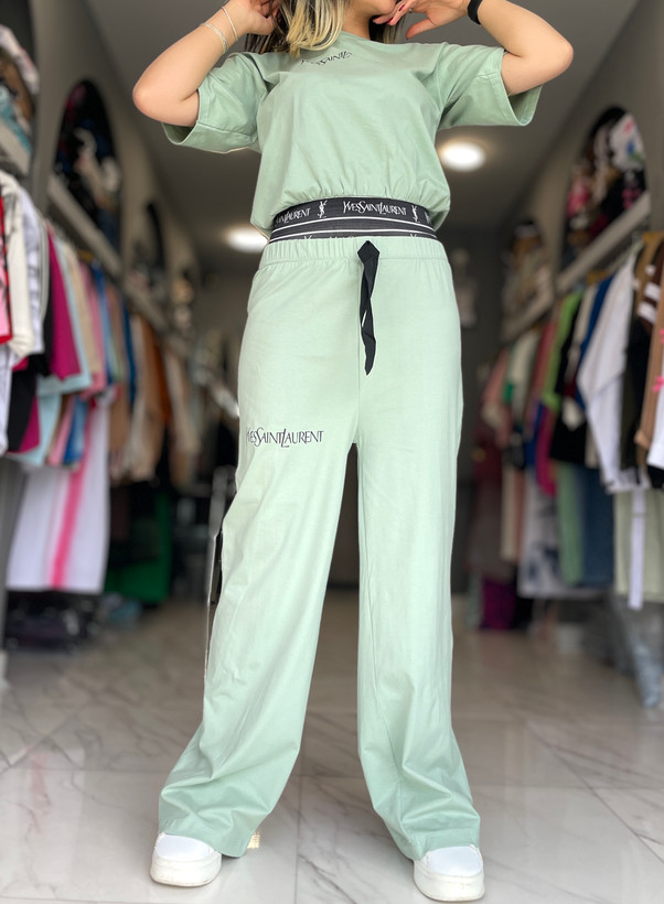 اندازه های کار: قد تیشرت ۵۴ قد یقه تا سرآستین ۳۶ دور بازو ۵۰-۴۲ دور سینه ۱۰۸-۱۲۰ قد شلوار ۱۰۶ دور کمر ۱۰۶-۶۸ دور باسن ۱۱۸-۹۴ دور ران ۷۲-۶۰ قد فاق ۳۷ ======
