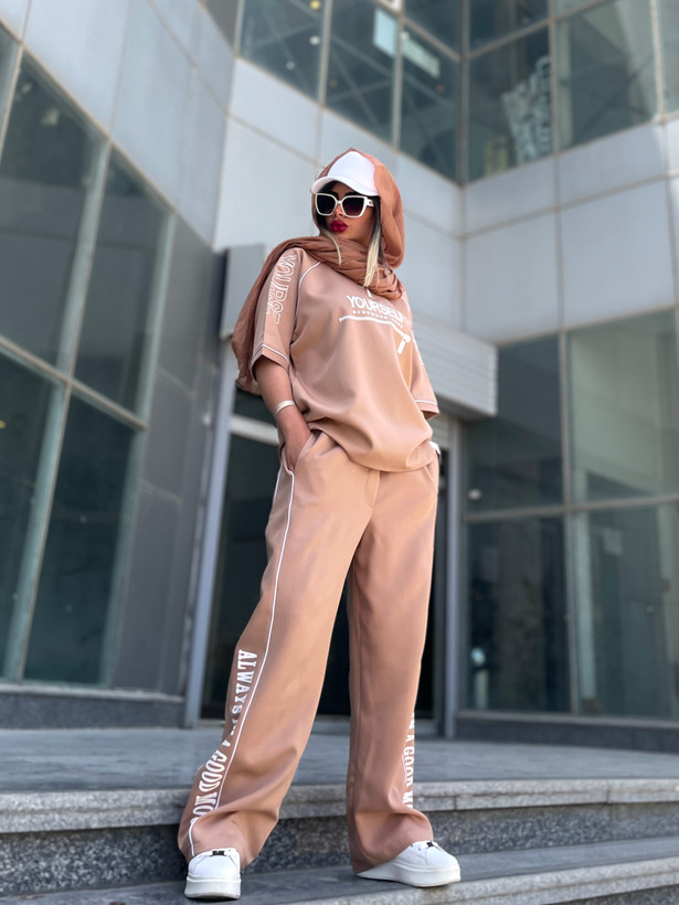 اندازه های کارقد تیشرت ۶۸ قد یقه تا سرآستین ۴۴ دور بازو ۵۰ دور سینه ۱۲۶ قد شلوار ۱۰۱ دور کمر ۱۰۴-۶۴ دور باسن ۱۱۴ دور ران ۷۰ قد فاق ۳۷
