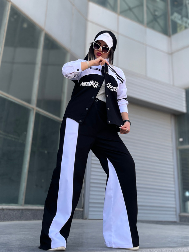 اندازه های کار: قد کت ۶۵ دور بازو ۴۰ دور سینه در حالت بسته ۱۱۶ یفه تا سر آستین ۷۲ قد شلوار ۱۱۳ دور کمر ۷۲ - ۹۵ دور ران ۶۸ دور باسن ۱۲۰ قد فاق ۳۷