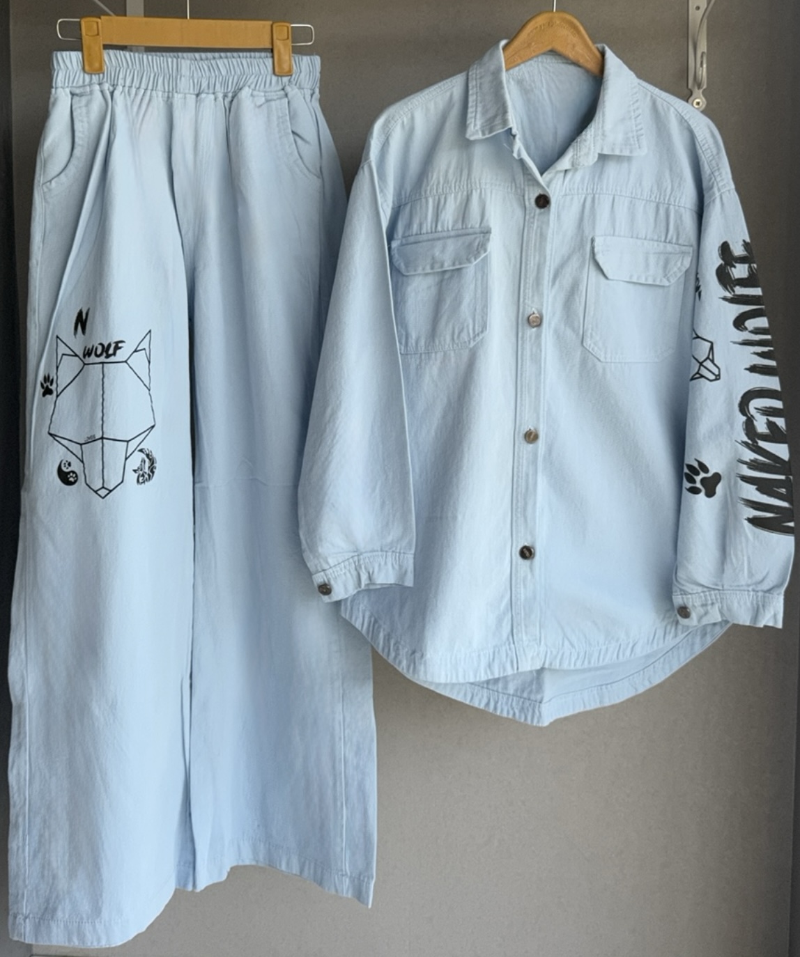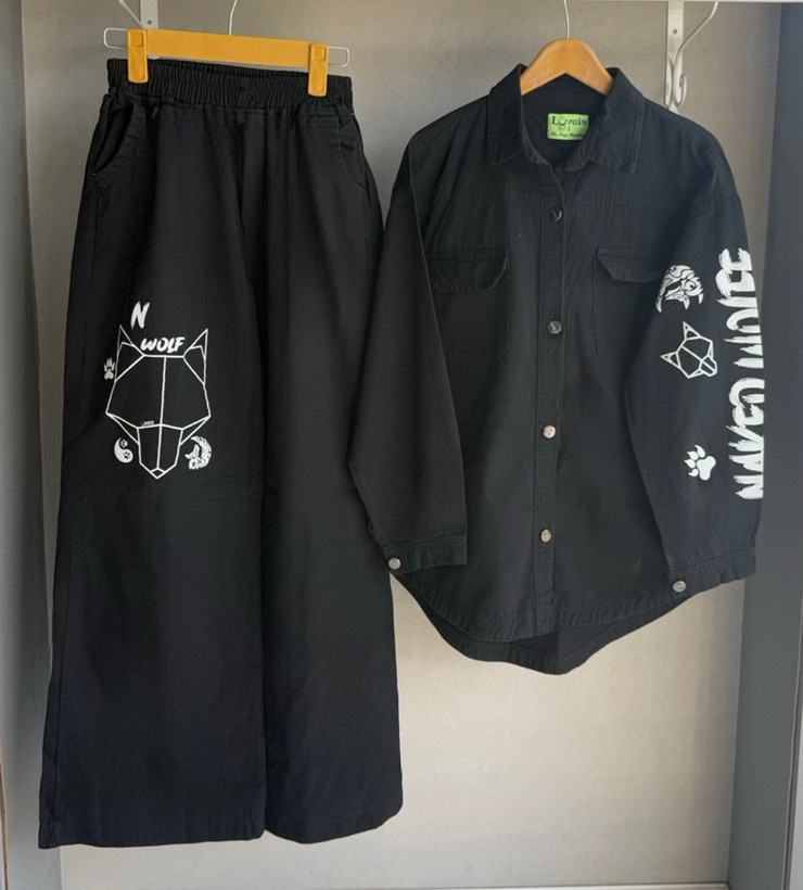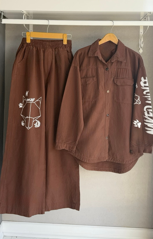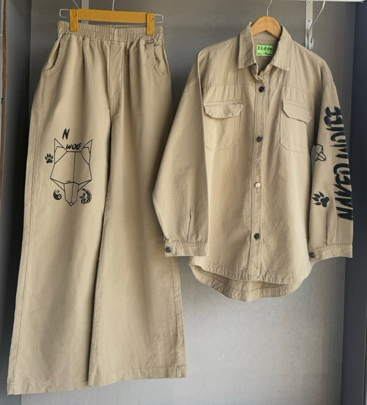 اندازه های کار: قد کت جلو ۷۲ پشت ۷۹ یقه تا سر آستین ۷۲ دور بازو ۲۲ دور سینه در حالت بسته ۱۱۲ - ۱۱۸ قد شلوار ۱۰۶ دور کمر ۶۴ -۱۰۸ دور باسن ۱۱۶ - ۱۱۸ دور ران ۷۲ - ۷۴ قد فاق ۳۳