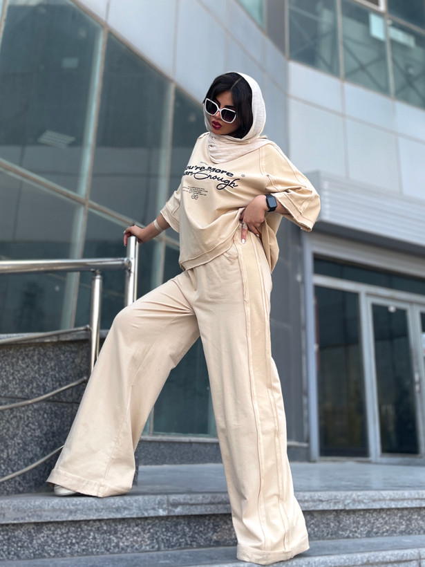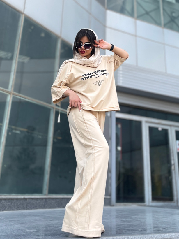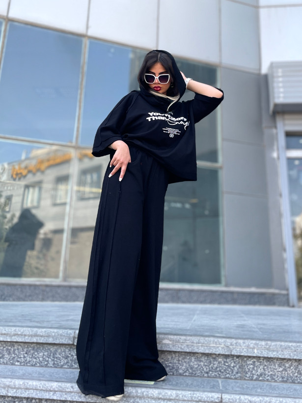 ست تیشرت و شلوار موژا مناسب برای اوایل فصل پاییز و قابل استفاده در مسافرت و ماشین و پیاده روی و همچنین دورهمی های شما با یه پارچه پنبه ای دو نخ